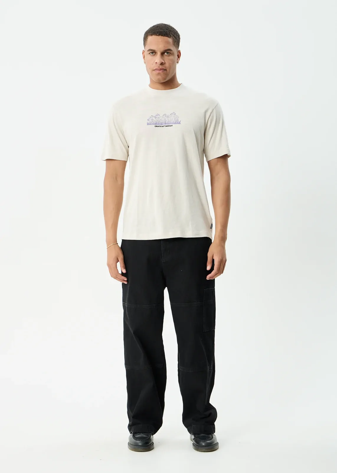 Made from an organic cotton and hemp blend, the fabric feels breathable and soft, with hemp adding a little extra durability and structure to a classic jersey tee. Finished with a subtle front graphic by artist Dan Watkins, it adds interest without overpowering the piece.