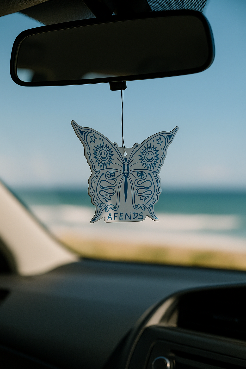 Take flight with the Afends Fly Away Air Freshener – Berry, featuring a whimsical butterfly design that channels carefree, coastal creativity.