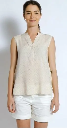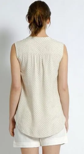 Hemp Rayon Dot Print Sleeveless Top - Apricot Dot - 12 In Stock