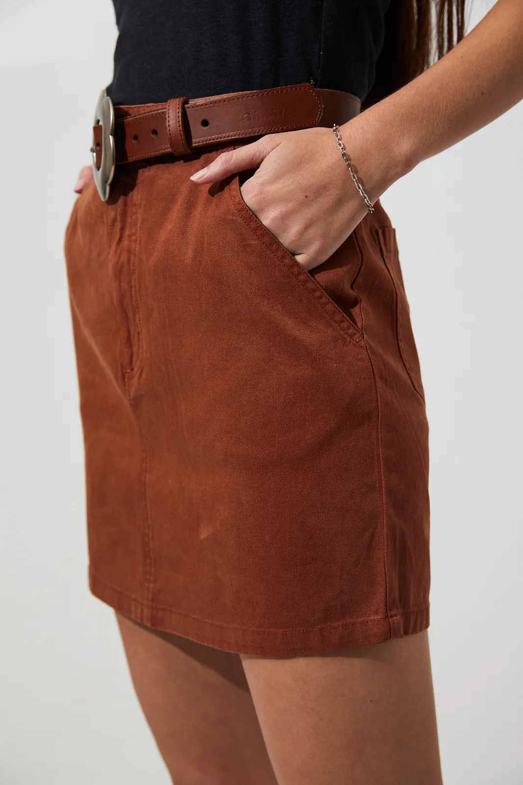 From street to safari, the Jane Hemp Skirt in Ginger is your go-anywhere mini with a conscious edge. Crafted from Afends’ premium hemp, organic cotton and a touch of elastane for stretch, this skirt balances durability, comfort and sustainability in one timeless design.