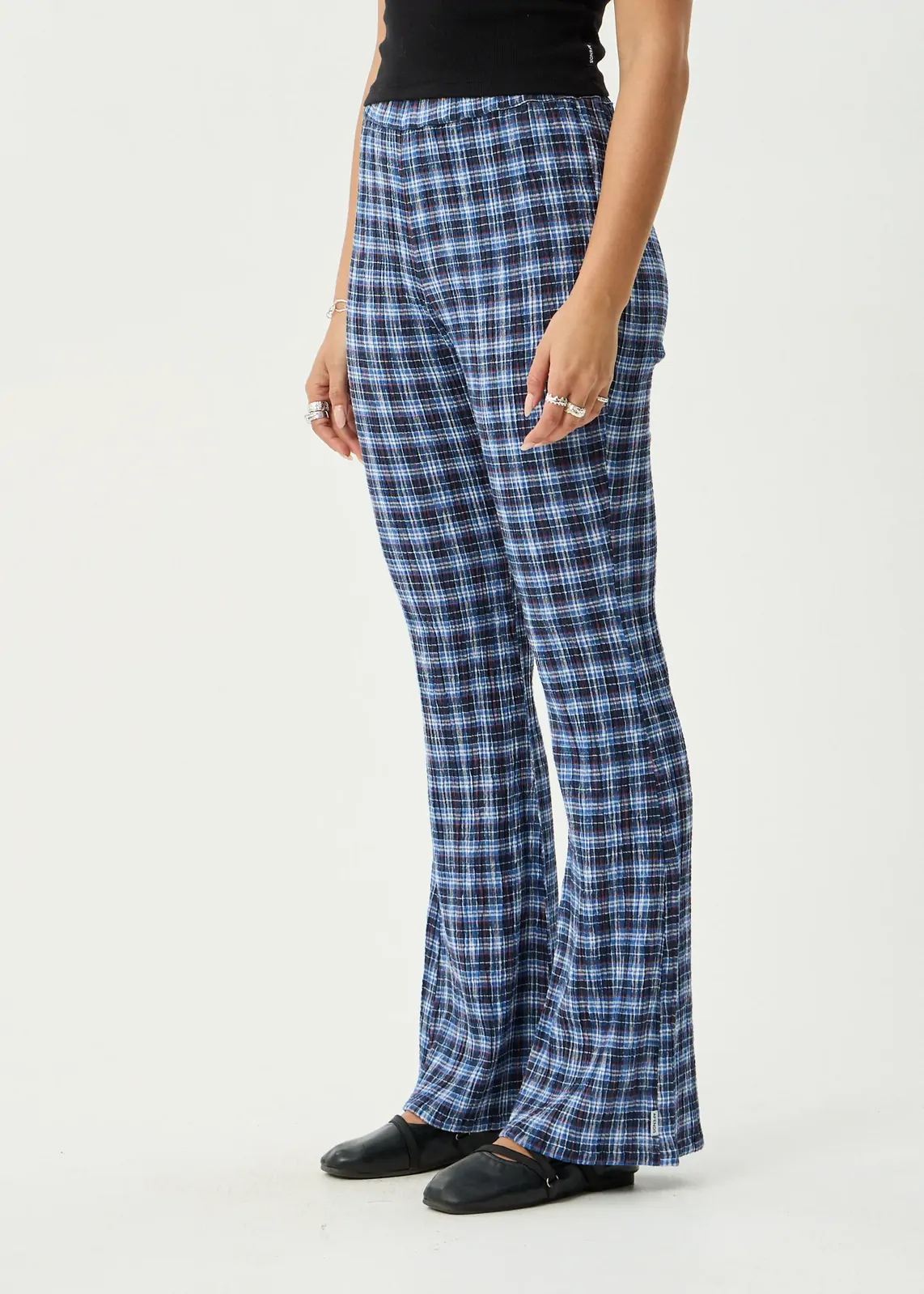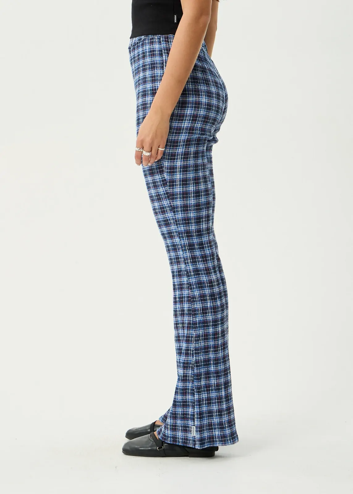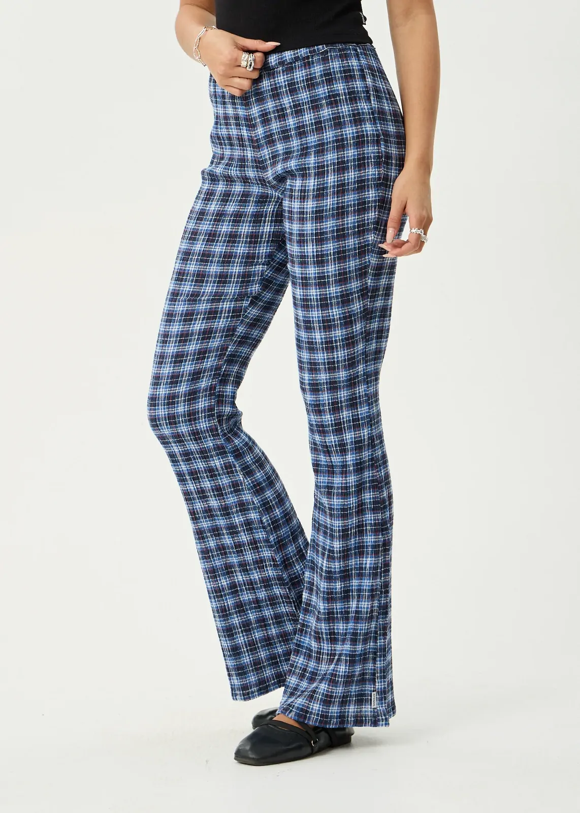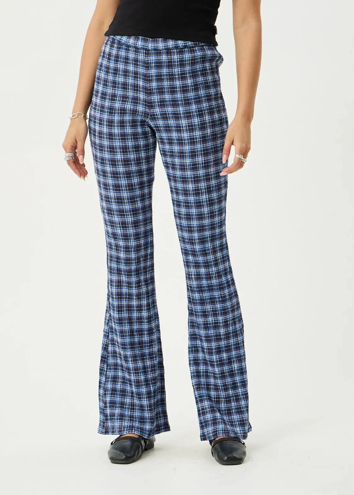 A lightweight flare pant with subtle texture and an easy, everyday fit.