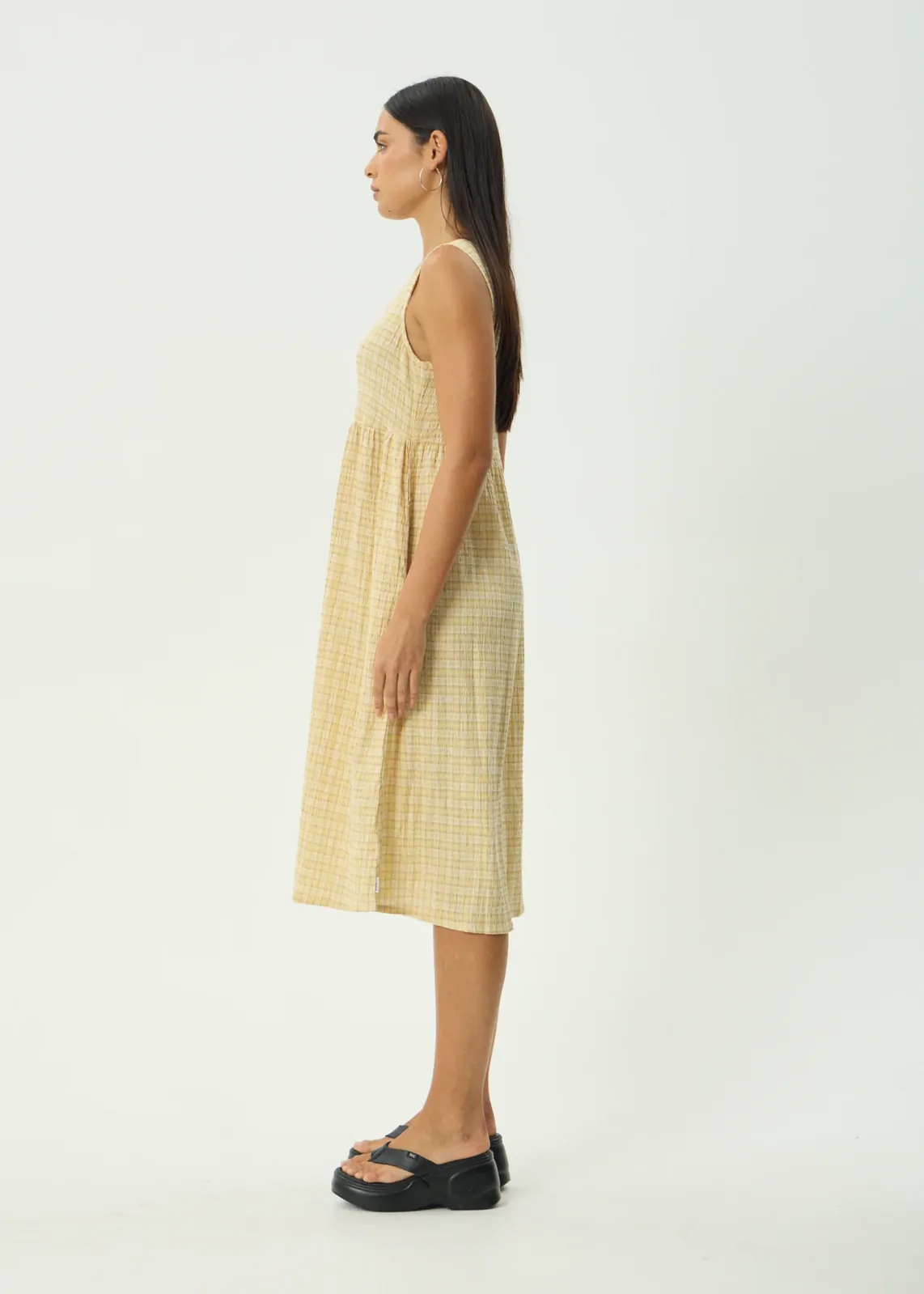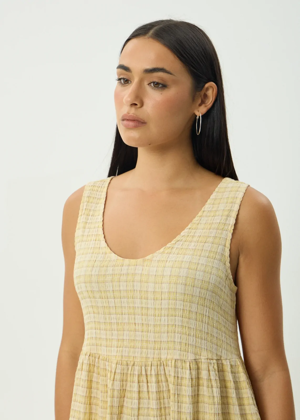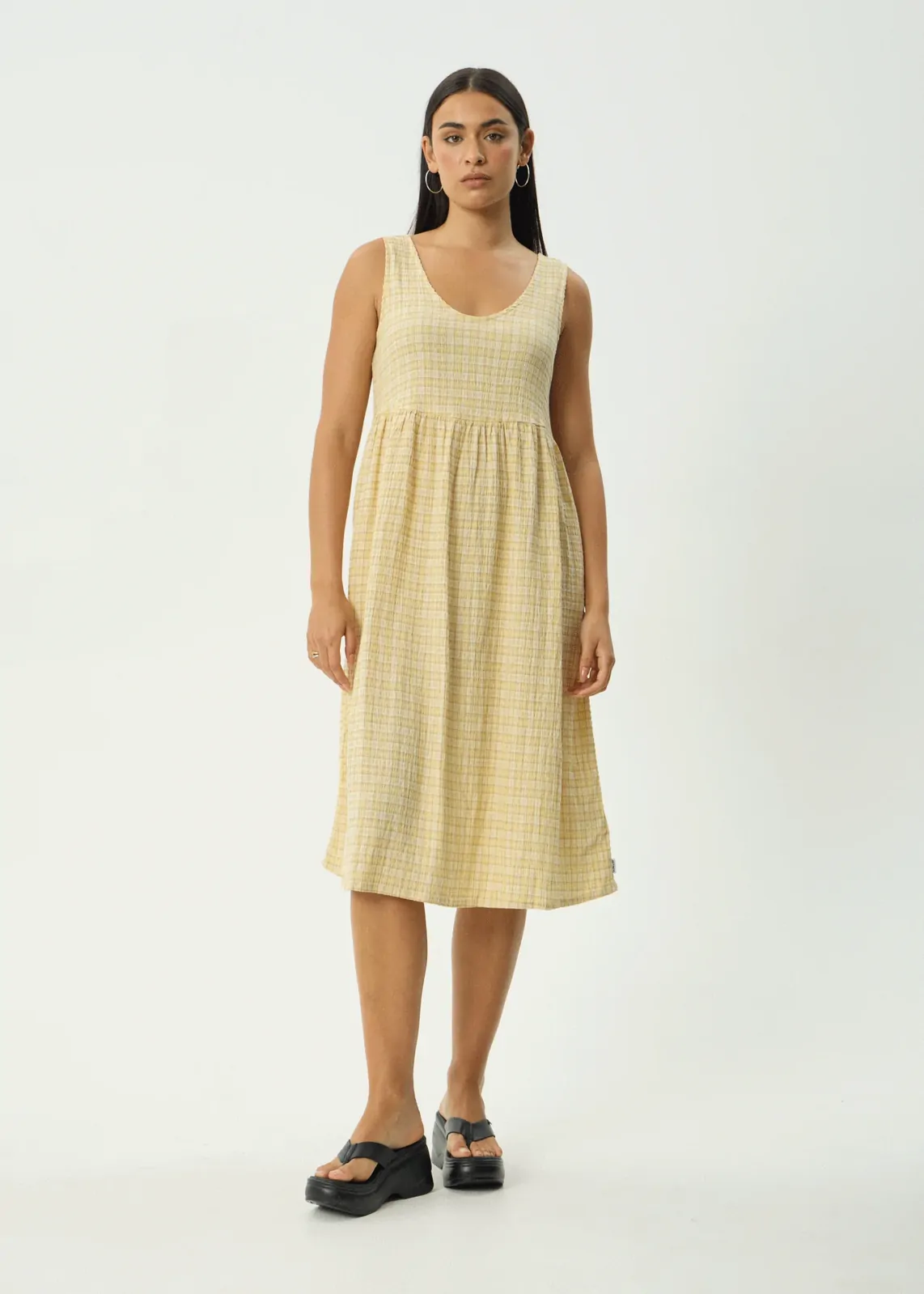 Fresh, fun, and effortlessly feminine - the Sunday Hemp Seersucker Check Midi Dress captures the easygoing spirit of summer. Designed in Afends’ signature Lemon Check, this timeless silhouette brings texture and charm together in perfect balance.